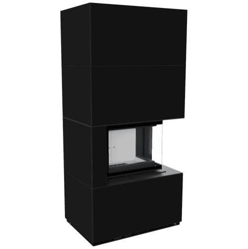 Каминокомплект Kratki Pro Floki в облицовке Nero Assoluto, угловое стекло справа (светлая футеровка)