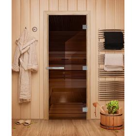 Дверь для бани DoorWood Эталон Бронза 1900х700, 10 мм, 3 петли, коробка - листв. порода
