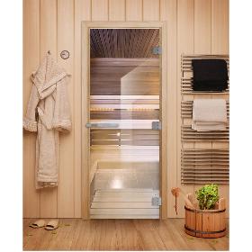 Дверь для бани DoorWood Эталон Прозрачное стекло 1900х700, 10 мм, 3 петли, коробка - листв. порода