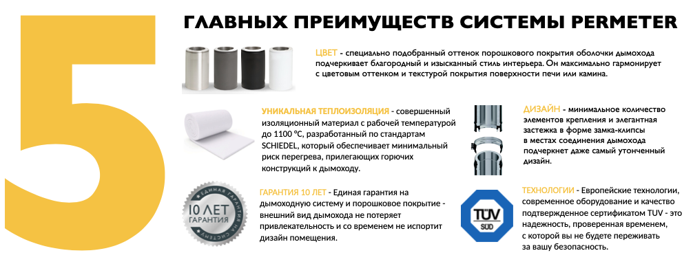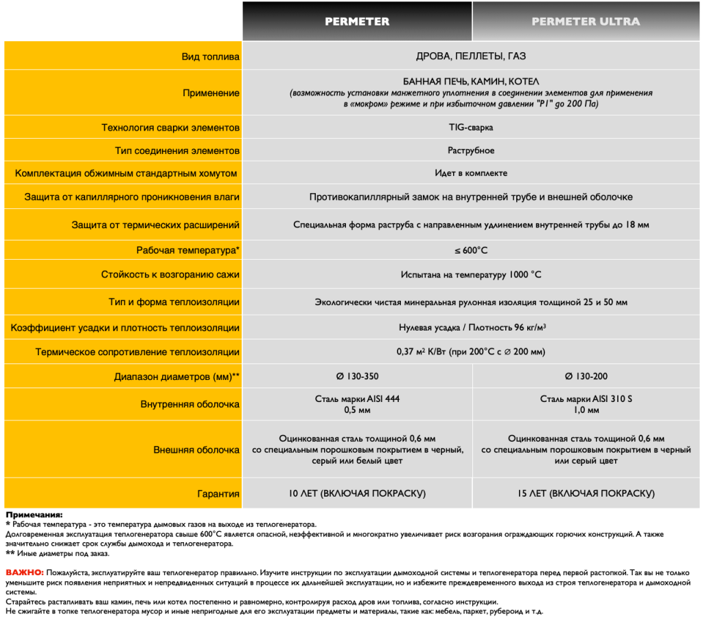 Для производства внутреннего контура дымоходных систем Permeter применяется высококачественная нержавеющая сталь. Она обладает отличной устойчивостью ко всем видам коррозии, благодаря содержанию хрома (Cr), кремния (Si) и титана (Ti). Внешняя оболочка - это оцинкованная сталь со специальным защитным порошковым покрытием.