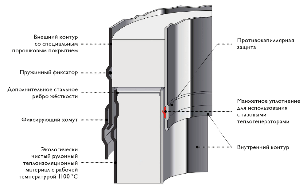 Узел стыковки элементов специально разработан инженерами Schiedel. Его совершенная конструкция позволяет производить быстрый монтаж и использовать меньшее количество крепежных элементов.