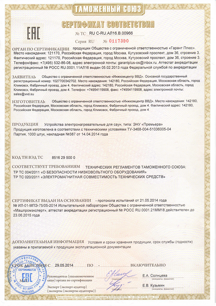 Инструкции, чертежи, документы - Электрическая печь для бани Инжкомцентр ВВД Премьера Профи 36 кВт