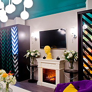 Большой шоу-рум электрокаминов в салоне Мытищи, зона с электрокаминами в салонах на Новой Риге и в Балашихе.