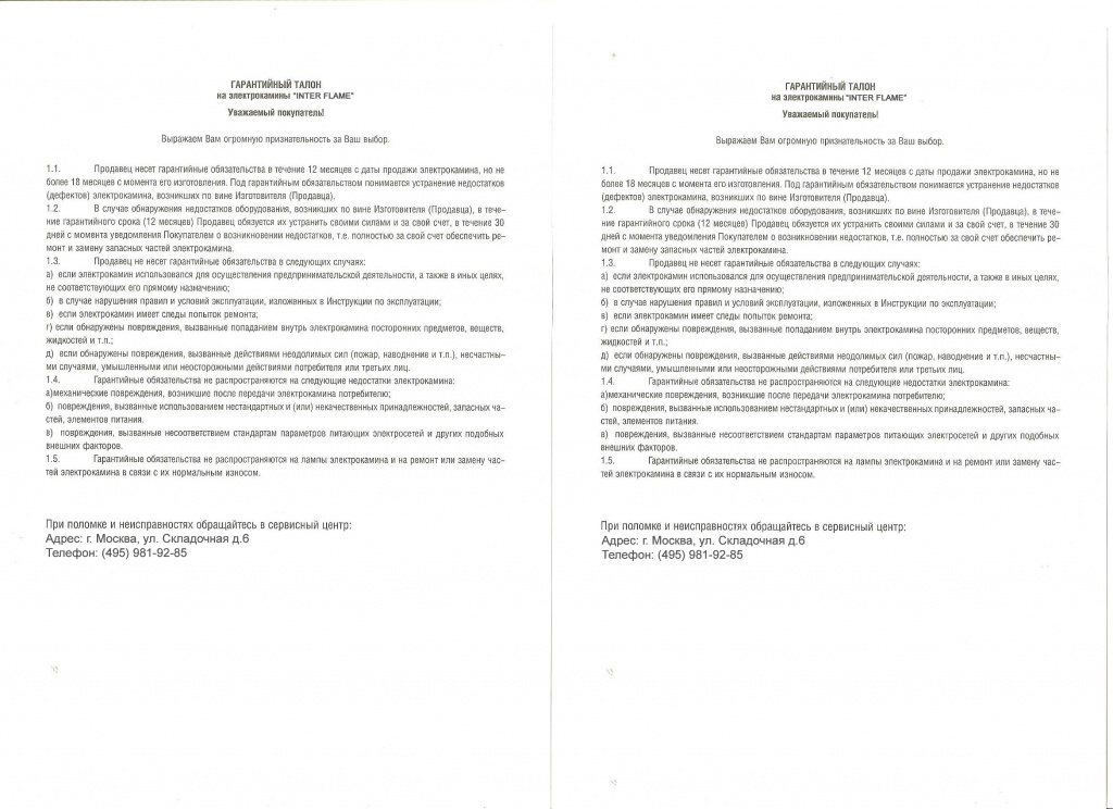 - 30 дней на возврат каминов и печей (при условии что товар не заказной, в новом состоянии и с документами)