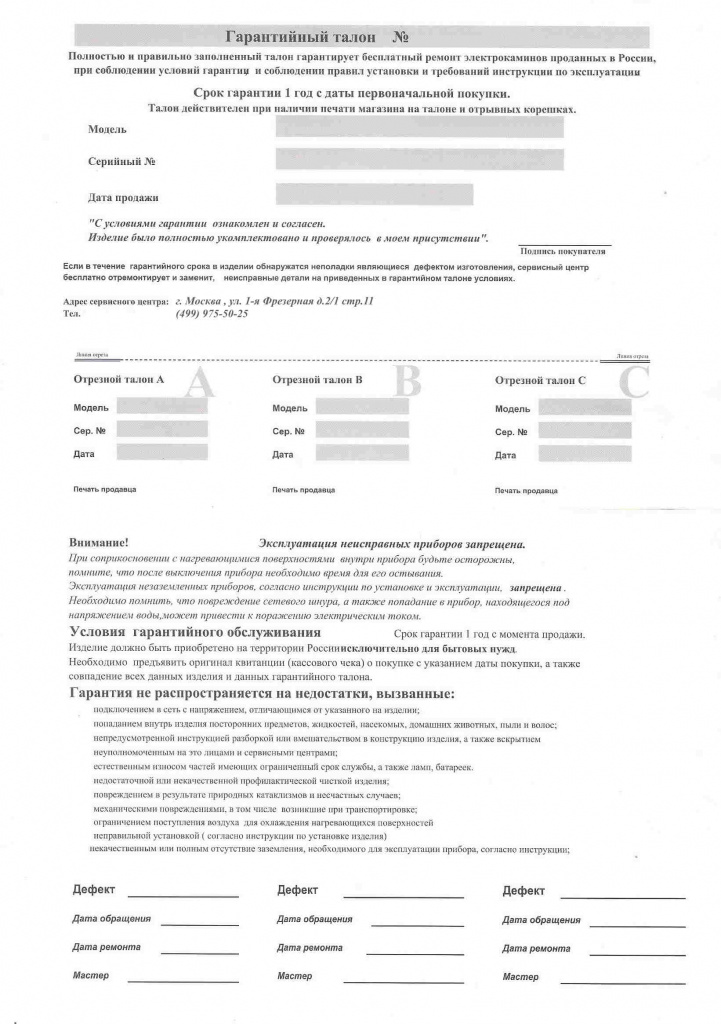- 30 дней на возврат каминов и печей (при условии что товар не заказной, в новом состоянии и с документами)