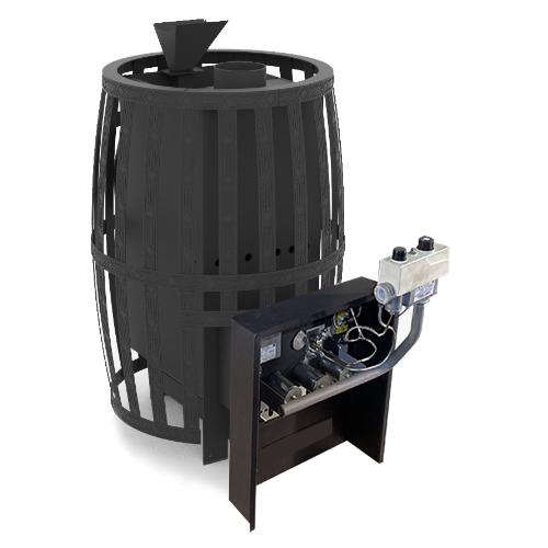 Печь рассчитана на объем парной до 20 м3 . Большая масса камней (200кг) вокруг топки быстро нагревается и аккумулирует тепло в камне. Для нагрева воды опционально устанавливается контур теплообменник в камеру сгорания!!!,