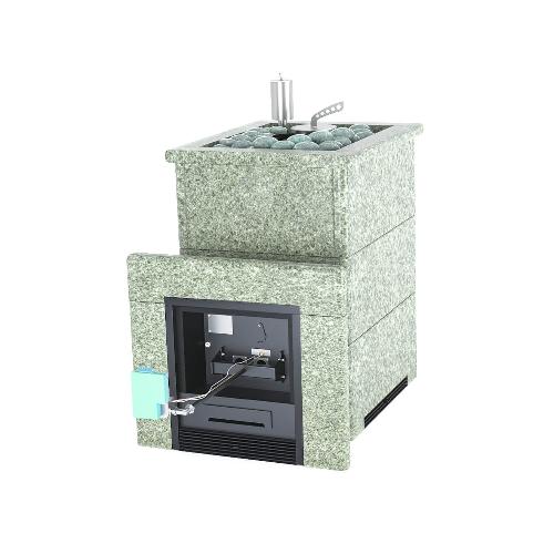 Банная печь ИзиСтим Анапа М2 в полноценном кожухе Жадеит с открытым верхом и с газовой горелкой (ГГУ-40)