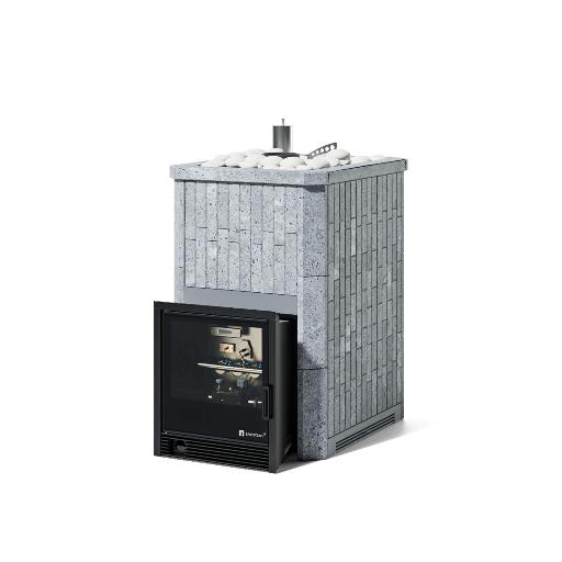 Банная печь Изистим Анапа в наборном полноценном кожухе Талькохлорит с открытым верхом с газовой горелкой (САБК 40)
