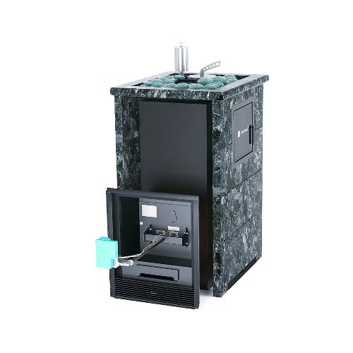 Банная печь ИзиСтим Сочи М2 в трехстороннем кожухе Пироксенит с открытым верхом с газовой горелкой (САБК-40)