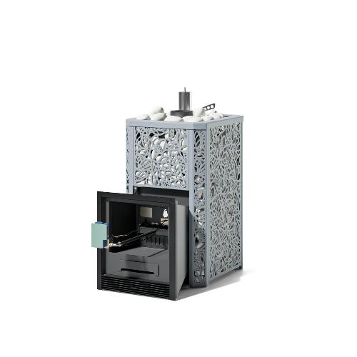 Банная печь ИзиСтим Ялта 15 с газовой горелкой ГГУ-20 (хохлома серый)