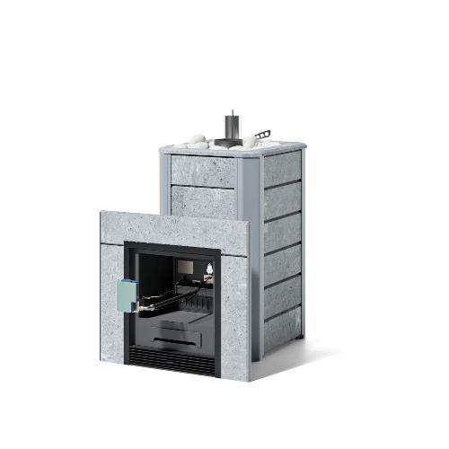 Банная печь ИзиСтим Ялта 15 в кожухе из природного камня с газовой горелкой ГГУ-20 (талькохлорит)