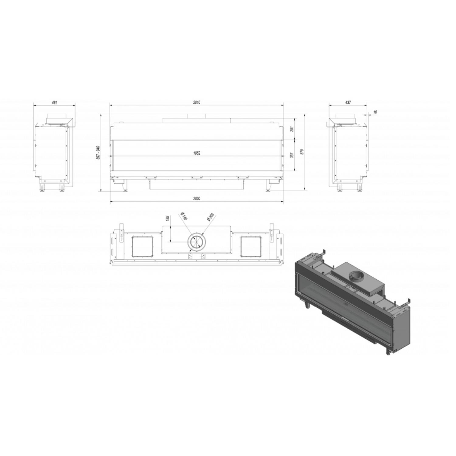 - Диаметр дымохода, мм 140, 206