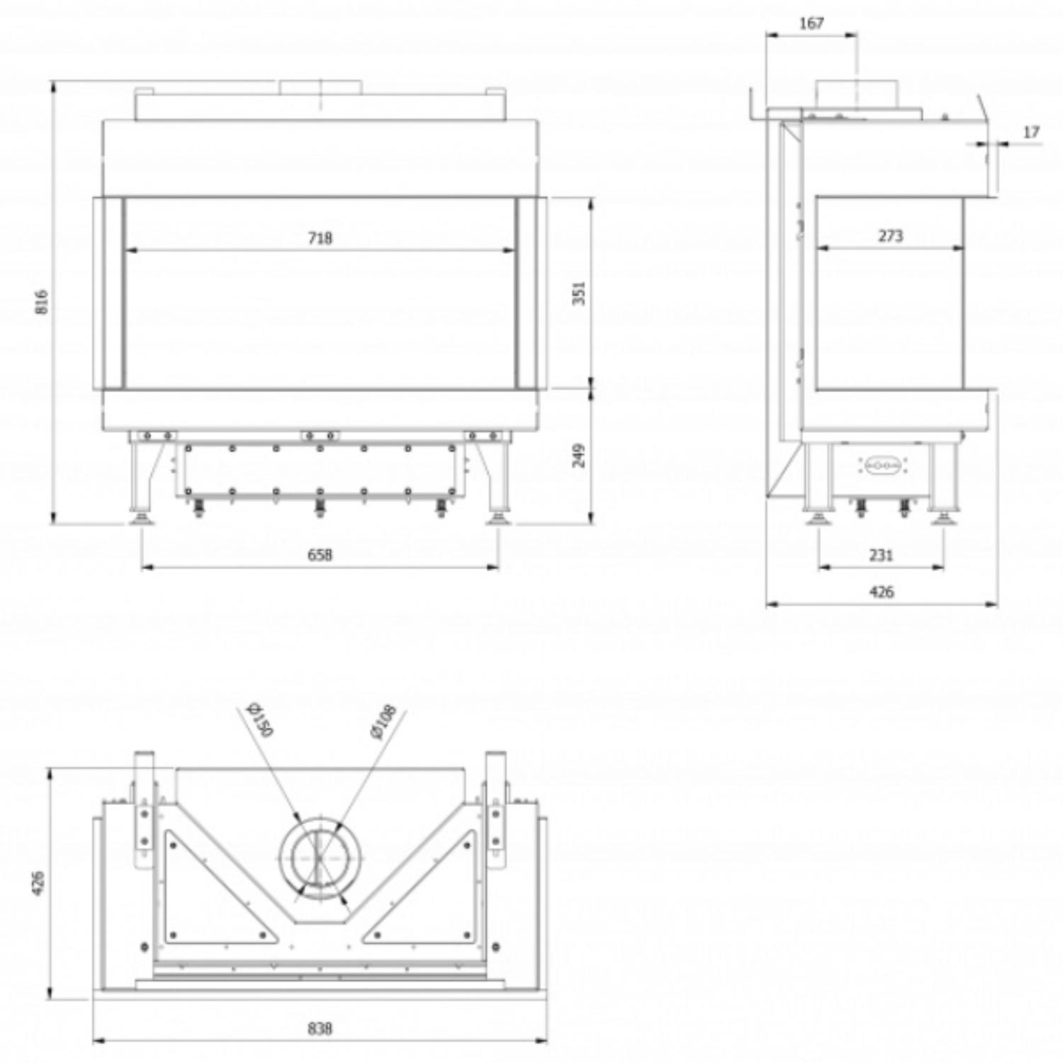 - Диаметр дымохода, мм 150