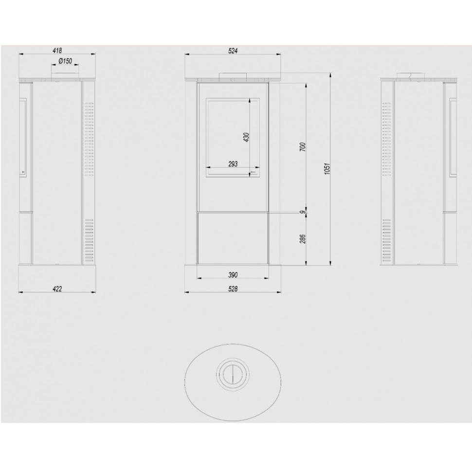 - Диаметр дымохода, мм 150