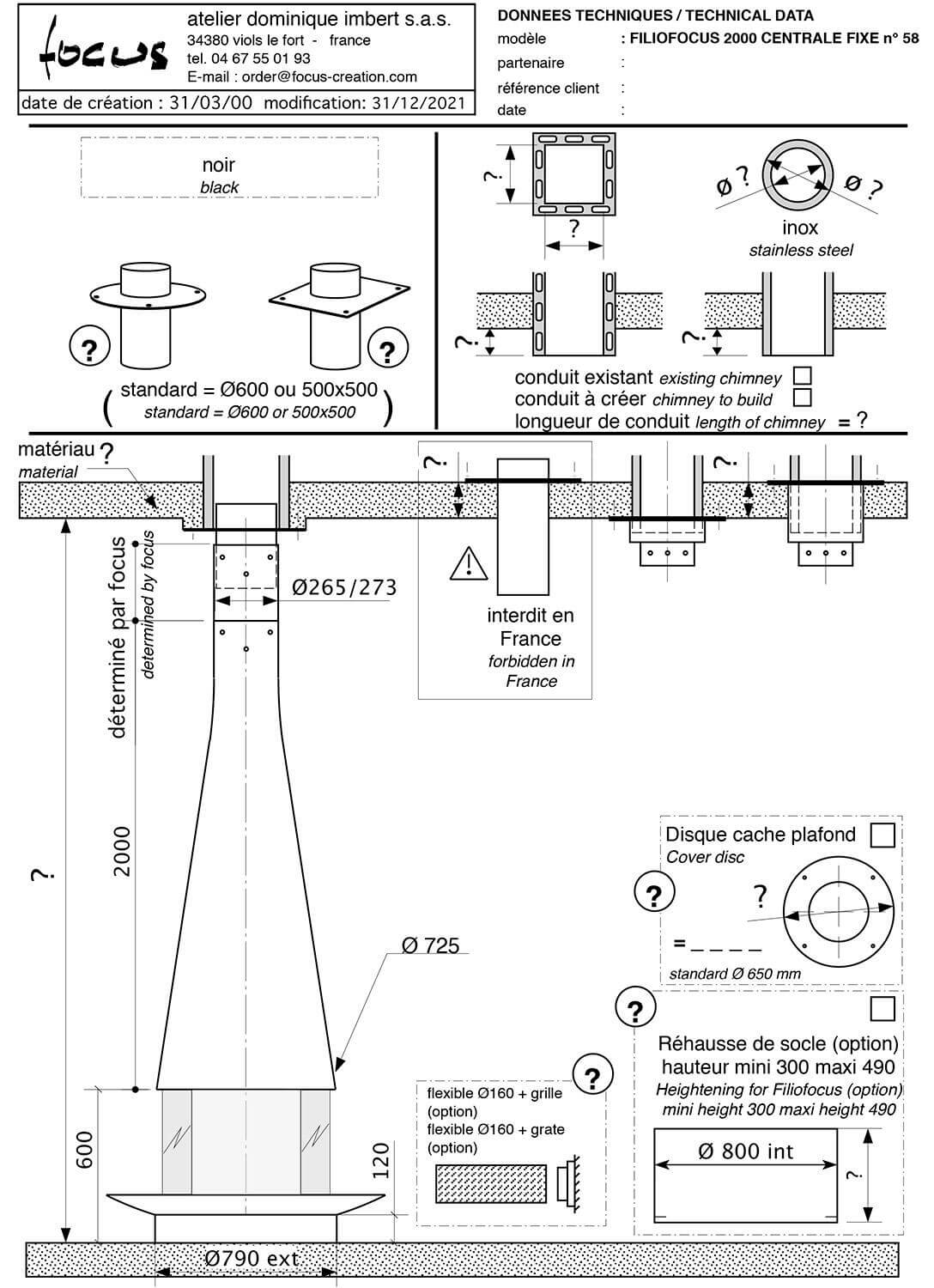 Инструкции, чертежи, документы - Готовый камин Focus Filiofocus 2000 центральный, со стеклом