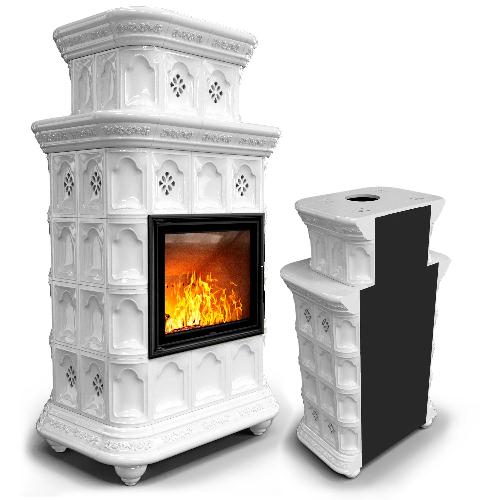 Готовый камин КимрПечь Истра двухъярусный пристенный с топкой Астов МЛ 700 (белый)