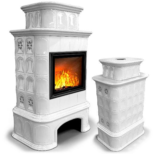 Готовый камин КимрПечь Прованс с дровником двухъярусный центральный с топкой Астов МЛ 700 (белый)