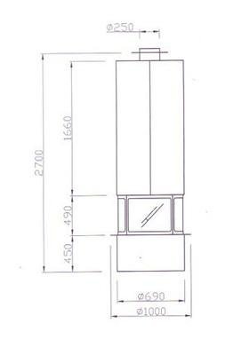 - Диаметр дымохода, мм 250
