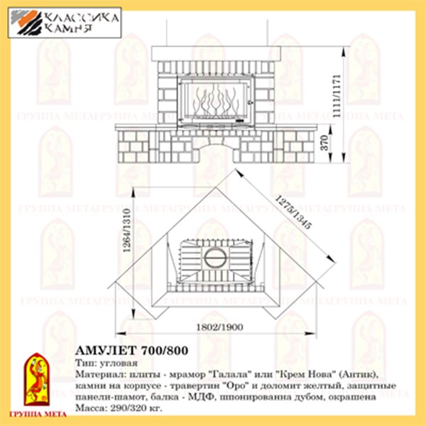 Инструкции, чертежи, документы - Каминная облицовка Мета Амулет 800 серия Магия Огня