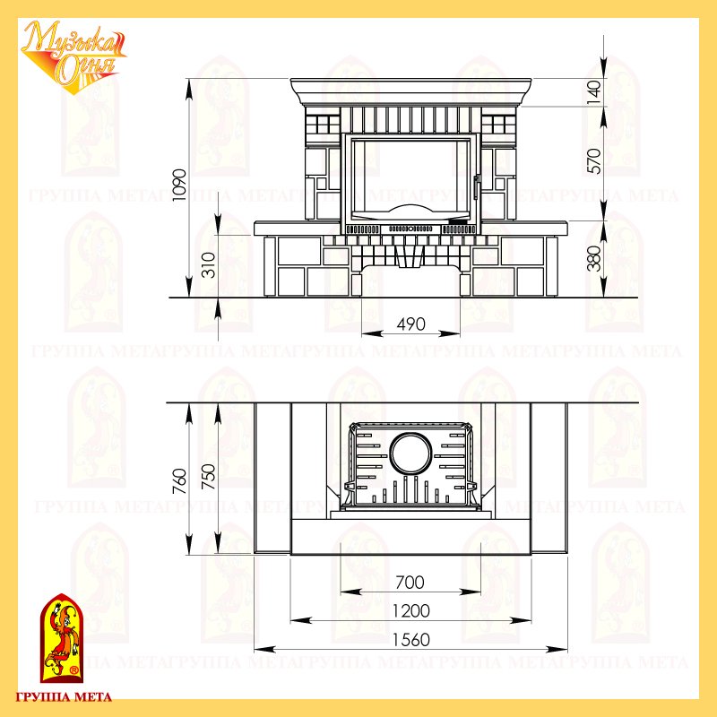 Инструкции, чертежи, документы - Каминная облицовка Мета Брио 700 серия Музыка огня