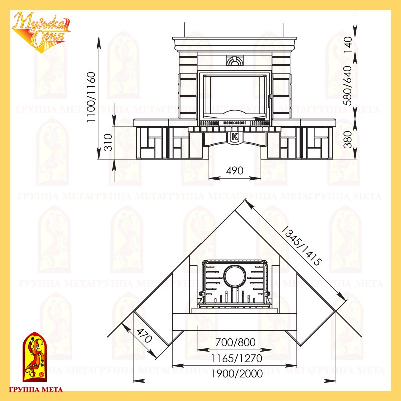 Инструкции, чертежи, документы - Каминная облицовка Мета Элегия рустик 800 серия Музыка огня