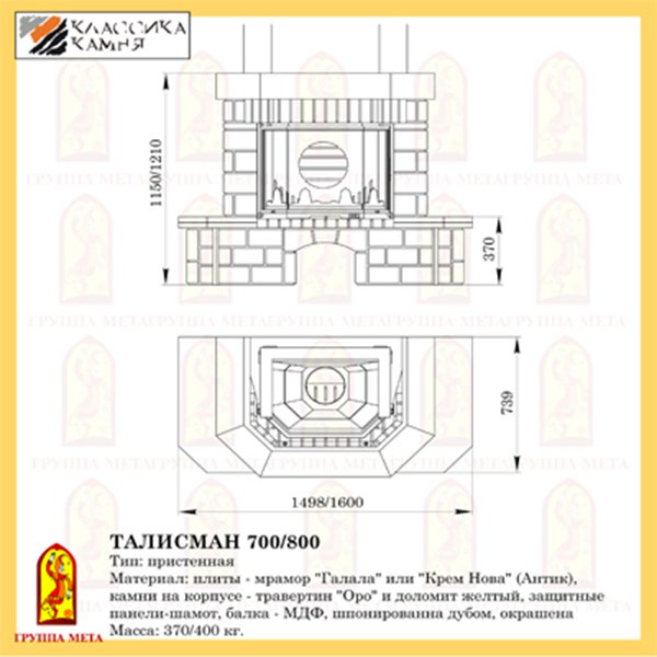 Инструкции, чертежи, документы - Каминная облицовка Мета Талисман 850 серия Магия Огня
