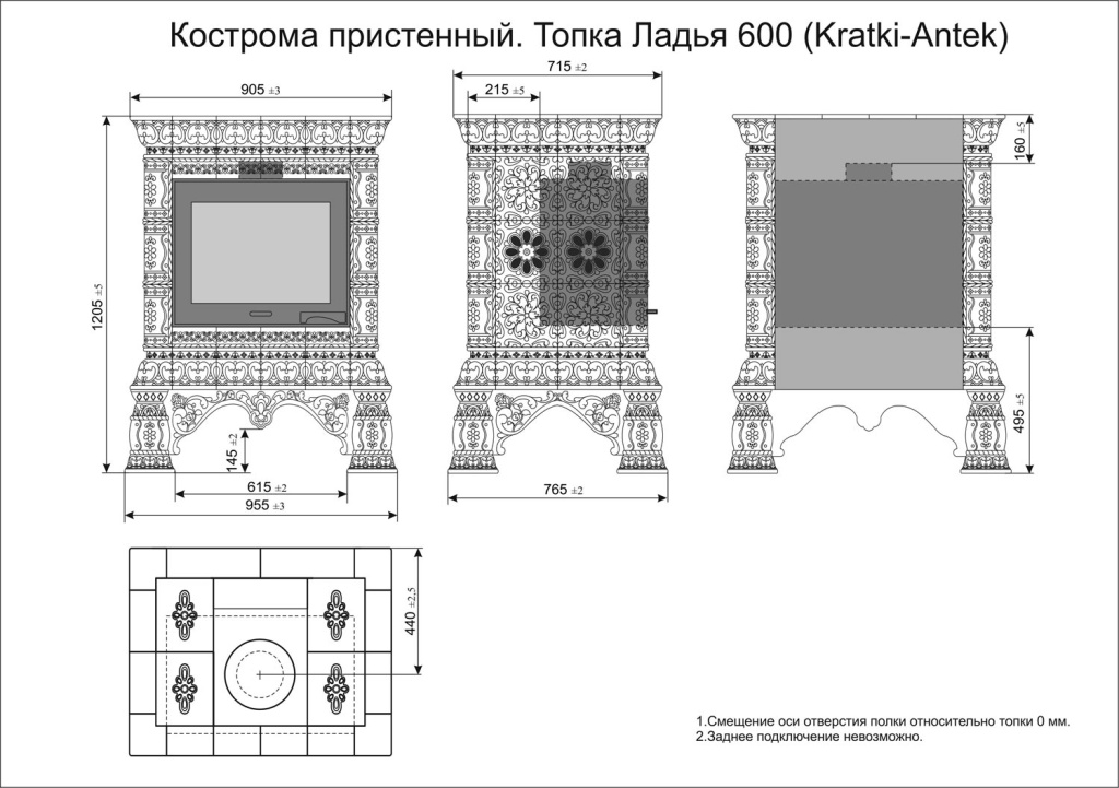 Инструкции, чертежи, документы - Облицовка камина КимрПечь Кострома пристенный для топок 600