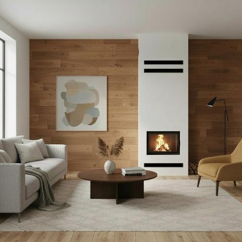 Это стильное и безопасное решение для интерьера — камин с топкой и облицовкой из негорючего материала на основе силикатов кальция. Прочная конструкция обеспечивает высокий уровень пожарной безопасности, а внешняя отделка из современных финишных материалов придаёт коробу эстетичный вид. Возможность окраски в любой цвет из палитры позволяет идеально вписать камин в любой дизайнерский проект — от классики до урбанистического лофта.