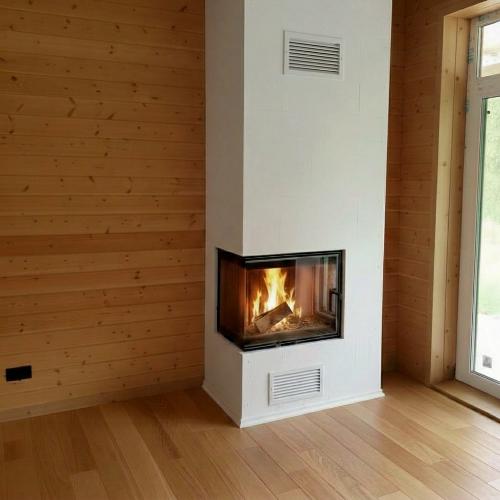 Камин подходит для монтажа в домах с деревянными стенами и перекрытиями
