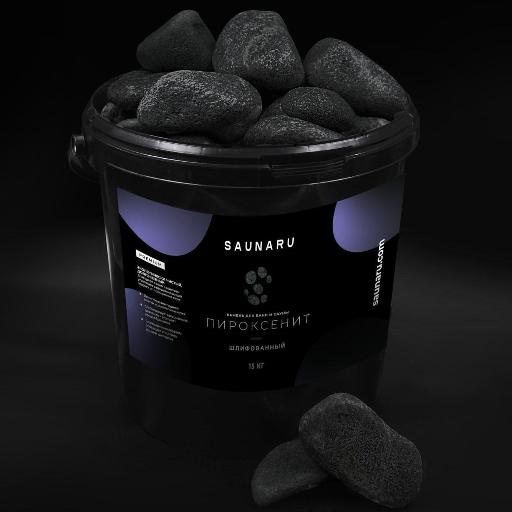 Камни для сауны Saunaru пироксенит шлифованный Premium, фракция до 100 мм, ведро 15 кг