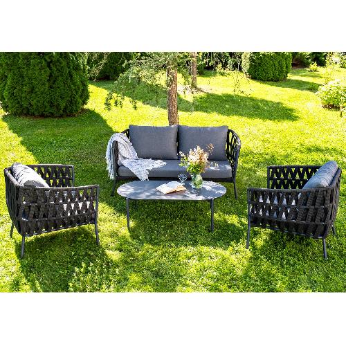 Лаунж-зона 4SiS Диего 4-местная плетеная из роупа (веревки), каркас алюминиевый темно-серый, роуп темно-серый