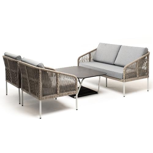 Лаунж-зона 4SiS Канны 4-местная из роупа со столом Глория (серый гранит), каркас алюминиевый светло-серый, роуп салатовый меланж