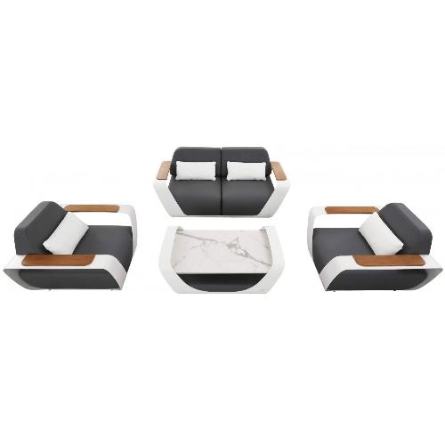 Мебельный гарнитур состоит из двух кресел, двухместного дивана и кофейного столика с керамической столешницей. Все выполнено в тонкой и минималистской форме, которая подчеркивает уникальный и футуристический характер мебели. Комплект создан для всех, кто ценит роскошь и комфорт. Мебель отличается использованием изящных, рациональных форм, которые восхищают своим эстетичным видом и функциональностью.