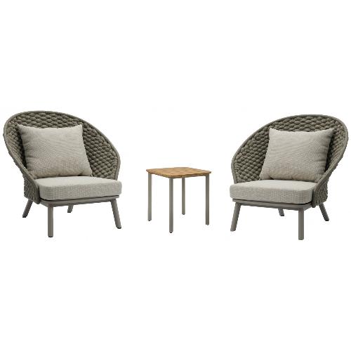 Ультрасовременный дизайн и высококачественные материалы объединяются в комплекте уличной мебели Mallow, создавая идеальную атмосферу для отдыха и развлечений на свежем воздухе. Легкий и прочный алюминиевый каркас, покрытый порошковым материалом, обеспечивает надежную поддержку и устойчивость к внешним воздействиям. Стильная и прочная столешница из тика придает нотку природной элегантности. Подушки на креслах покрыты высококачественной акриловой тканью, которая не только приятна на ощупь, но и устойчива к влаге, ультрафиолету и другим атмосферным воздействиям.