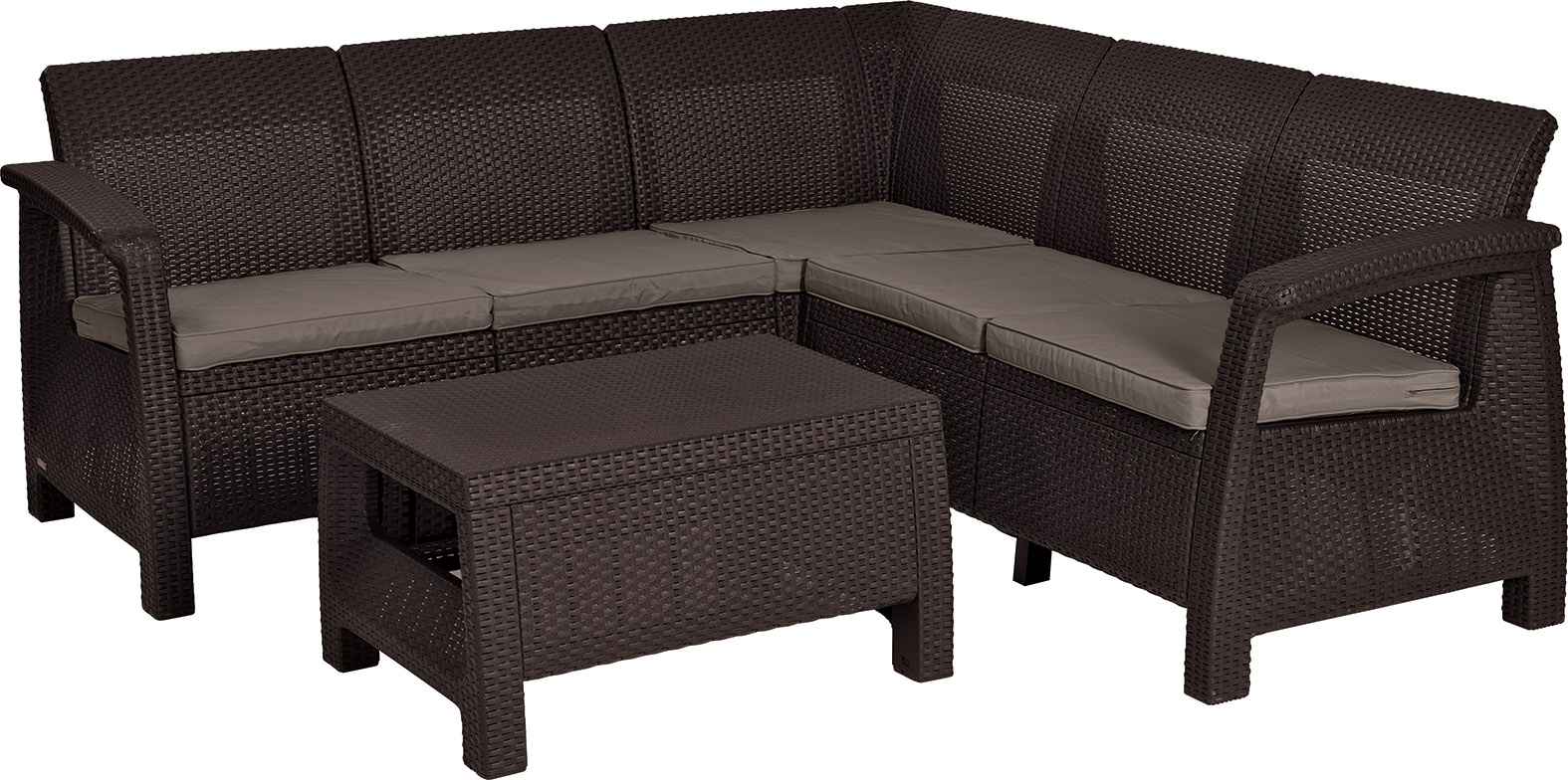 Элегантность и функциональность в одном комплекте! Выполненный с высокой тщательностью угловой комплект Корфу Релакс, состоящий из удобного дивана и стильного столика, обеспечит пользователям максимальный комфорт использования. Мебель легкой, но устойчивой конструкции, выполнена из высококачественного полимера, устойчивого к воздействию неблагоприятных погодных условий/ Оригинальная текстура мебели, напоминающая ротанговый переплет, профилированное сиденье и мягкие подушки безусловно являются преимуществом данного продукта.