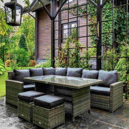 Благодаря такой компоновке комплект подойдет не только для тихого семейного отдыха или вечерних совместных трапез, но и времяпровождения в кругу близких друзей. ZORRO – изысканность и практичность Набор уличной мебели изготовлен на основе прочного металлического каркаса с декоративной отделкой из плетеного ручным способом техноротанга. Благодаря натуральному серому оттенку он гармонично вписывается в любое окружение, не делая на себе лишних акцентов. Что касается эксплуатационных качеств садовой мебели ZORRO, то среди них стоит отметить: устойчивость к осадкам и солнечному свету;