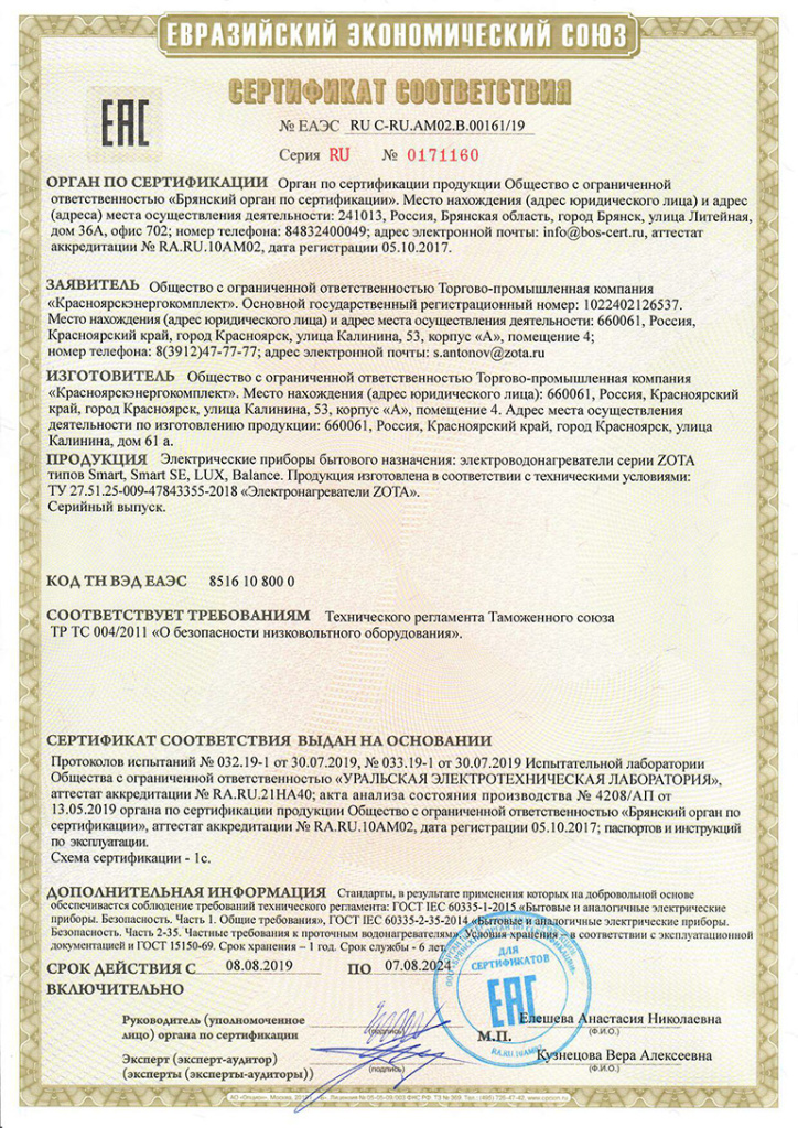 Инструкции, чертежи, документы - Электрический котел Zota Balance 12