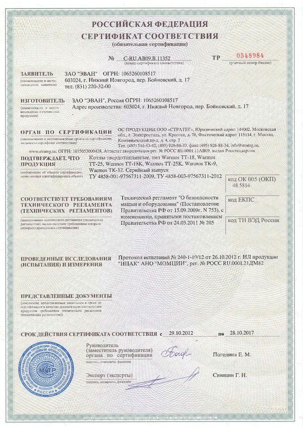 Инструкции, чертежи, документы - Котел твердотопливный Эван Warmos TT-25