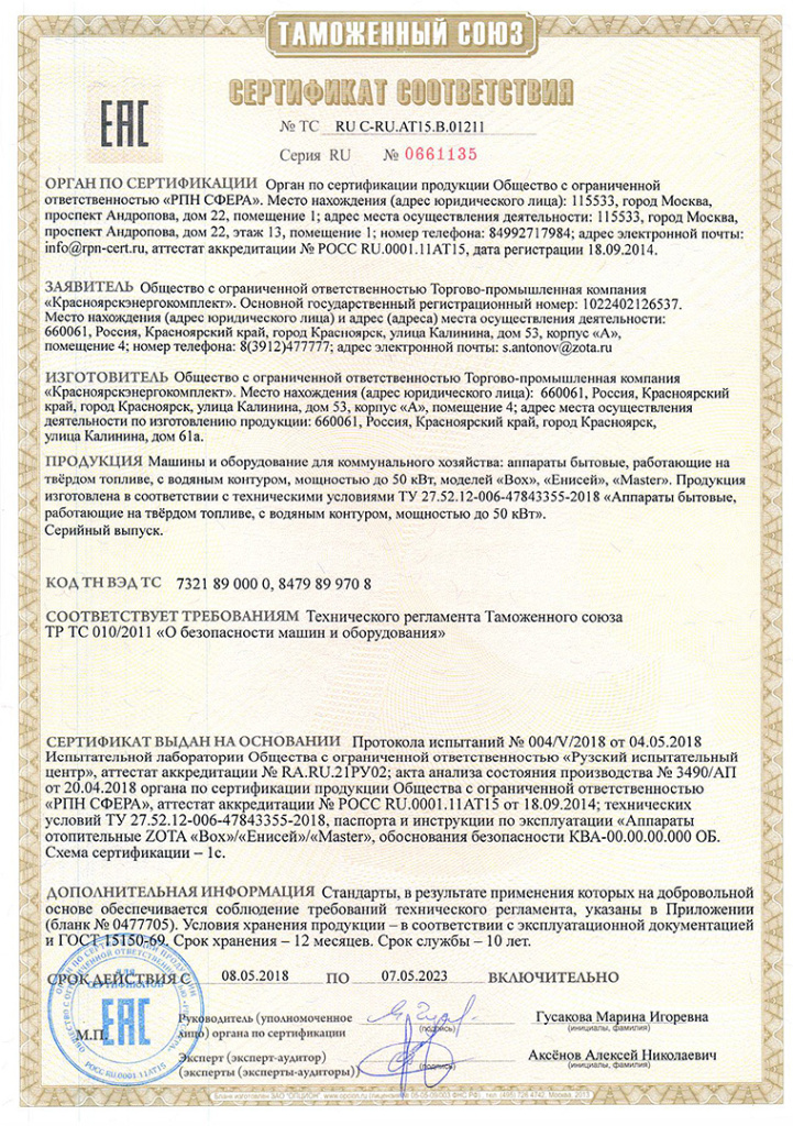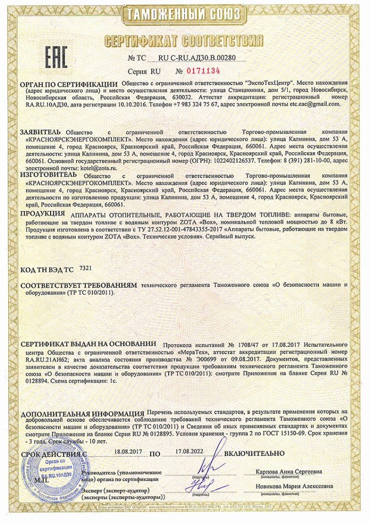 Инструкции, чертежи, документы - Отопительный котел Zota Box -10