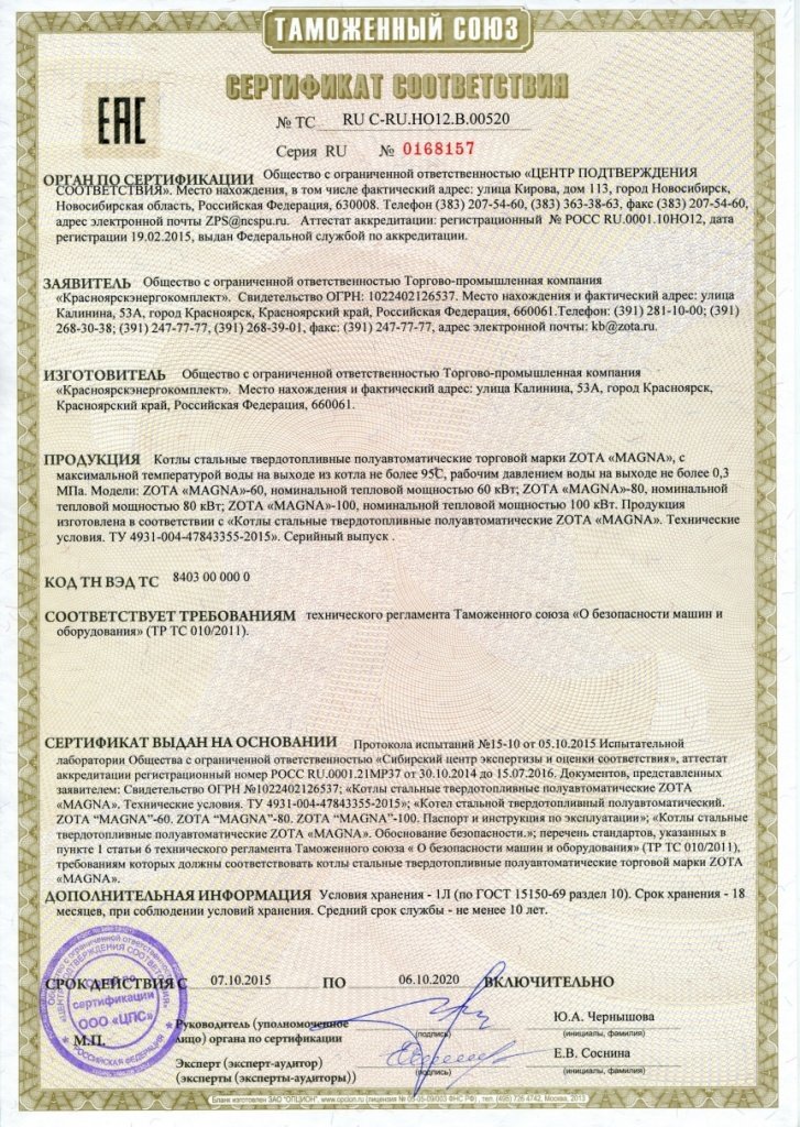 Инструкции, чертежи, документы - Котел Zota Magna-60