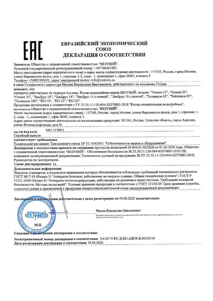 Инструкции, чертежи, документы - Котел отопительный Везувий Эльбрус - 14 с плитой