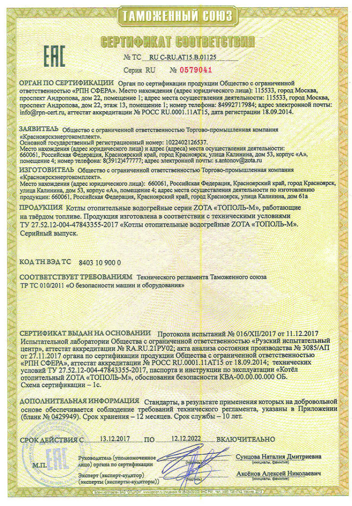Инструкции, чертежи, документы - Отопительный котел Zota Тополь 14М