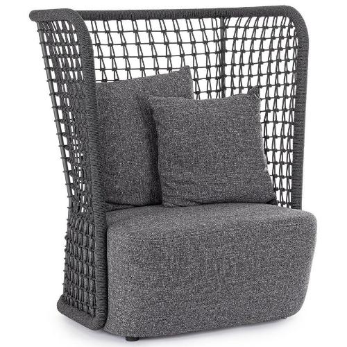 - Веревочное плетение из олефиновой ткани (100% полипропилен), благодаря которому кресло выглядит стильно в любом помещении или на открытой площадке.