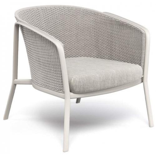 Лаунж-кресло Carousel с прочным каркасом из алюминия и изысканным плетением из роупа станет отличным украшением любого открытого пространства или закрытого помещения. Материалы, используемые в изготовлении модели, гарантируют длительную стойкость и стабильность цвета. Сиденье и каркас крепятся между собой структурной сваркой TIG. Такая технология обеспечивает особое сопротивление, а также лучший стандарт с точки зрения прочности и эстетики.