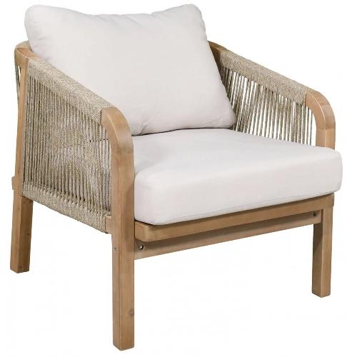 - Веревочное плетение роуп 6 мм толщиной на спинке и подлокотниках излучает стиль в сочетании с деревянными поверхностями.