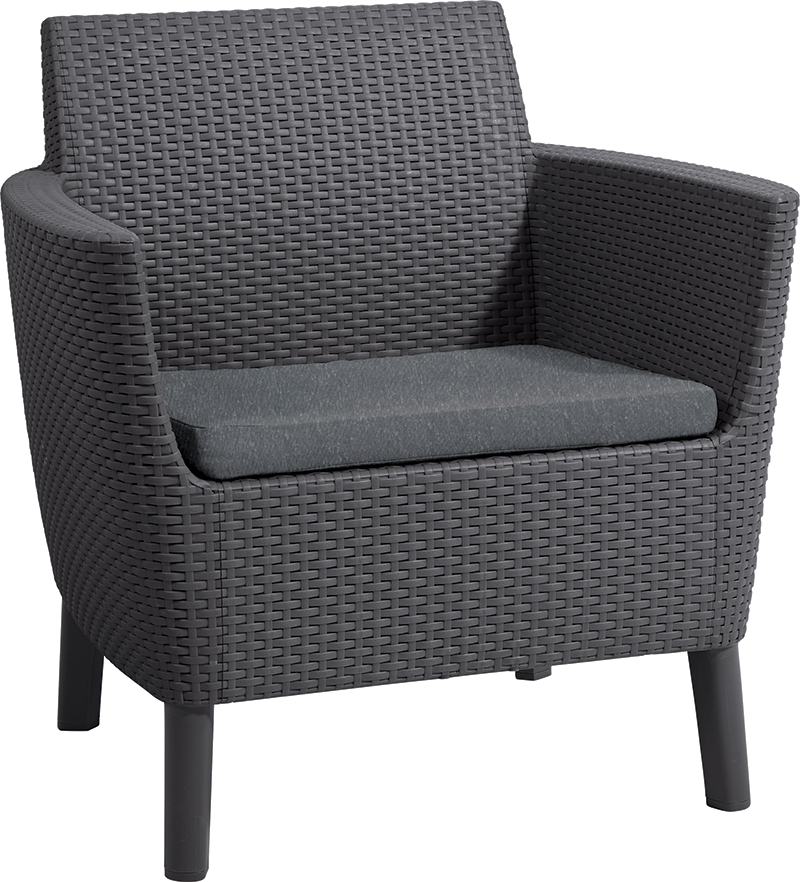 Современная обтекаемая форма, удобство и высокое качество изготовления – это основные достоинства Salemo. В состав комплекта входят два вместительных кресла с подушками сиденья. Фактура поверхности, имитирующая натуральное ротанговое плетение, повышает эстетическую ценность продукта. Мебель легко содержать в чистоте, она проста в монтаже и устойчива к действию неблагоприятных погодных условий.