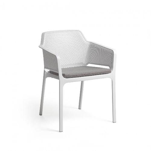 Net – это моноблочная модель из стеклопластика с перфорированным рисунком, который равномерно распределен по трехмерной поверхности сиденья. Материалы не подвержены воздействию УФ-излучения, благодаря этому кресло долго сохраняет свой первоначальный вид и не выцветает на солнце. Кресло оснащено нескользящими накладками на ножках, поэтому его можно разместить возле бассейна, а также оно может штабелироваться, что облегчает его хранение.