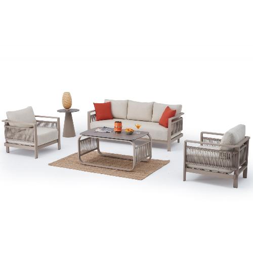 Комплект плетеной лаунж мебели Venedik – это идеальное решение для обустройства зоны отдыха как в сфере Contract, так и в частном проекте. Благодаря стильному внешнему виду и своим характеристикам комплект можно легко использовать в саду, на балконе или террасе. Благодаря алюминиевому каркасу мебель обладает прочностью и надежностью, а за счет плетения из акрила ее можно использовать на открытых пространствах, не боясь потери привлекательного внешнего вида, и с гарантированным сохранением цвета. Подушки на сиденьях дивана и кресел обеспечивают очень комфортную и удобную посадку.