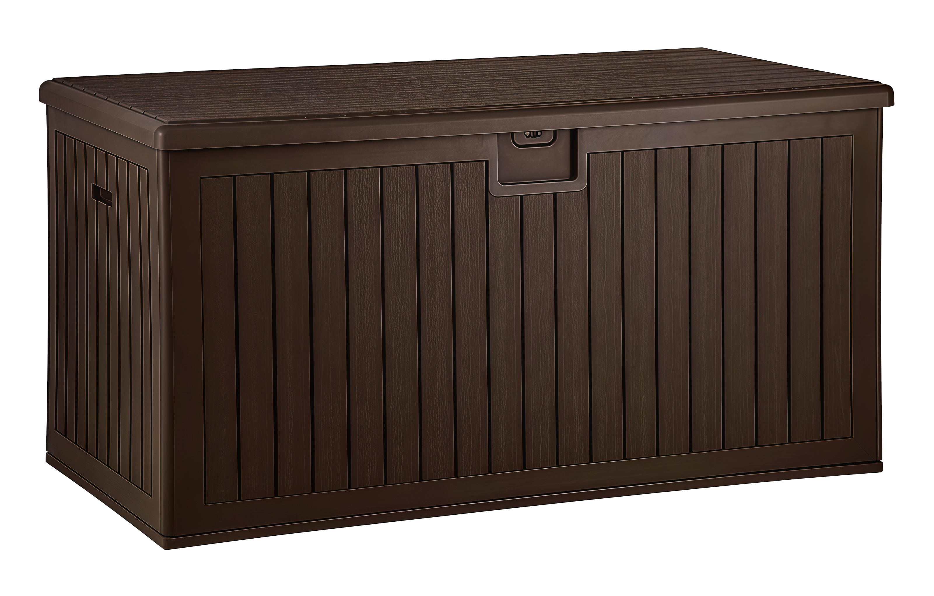 Сундук выполнен из высококачественного полиэтилена низкого давления (HDPE), устойчив к ржавчине, выцветанию и коррозии. Двухслойные панели обеспечивают повышенную прочность и долговечность, а текстура под дерево придает изделию эстетичный и современный внешний вид.