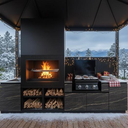 Отдельно хочу отметить, что рассматривали возможность установки именно открытой топки , хотелось камин в зону барбекю. И у нас это получилось, стало очень уютно и тепло в зимний период времени у меня на террасе.